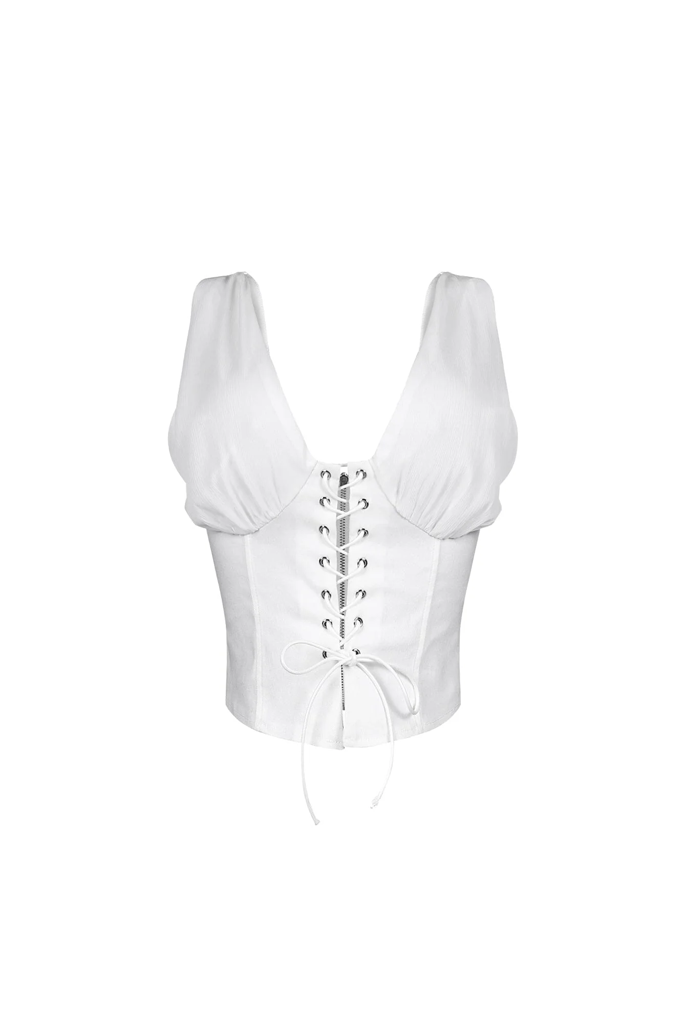 Sleeveless vest featuring a stylish front eyelet lace up design and adjustable straps