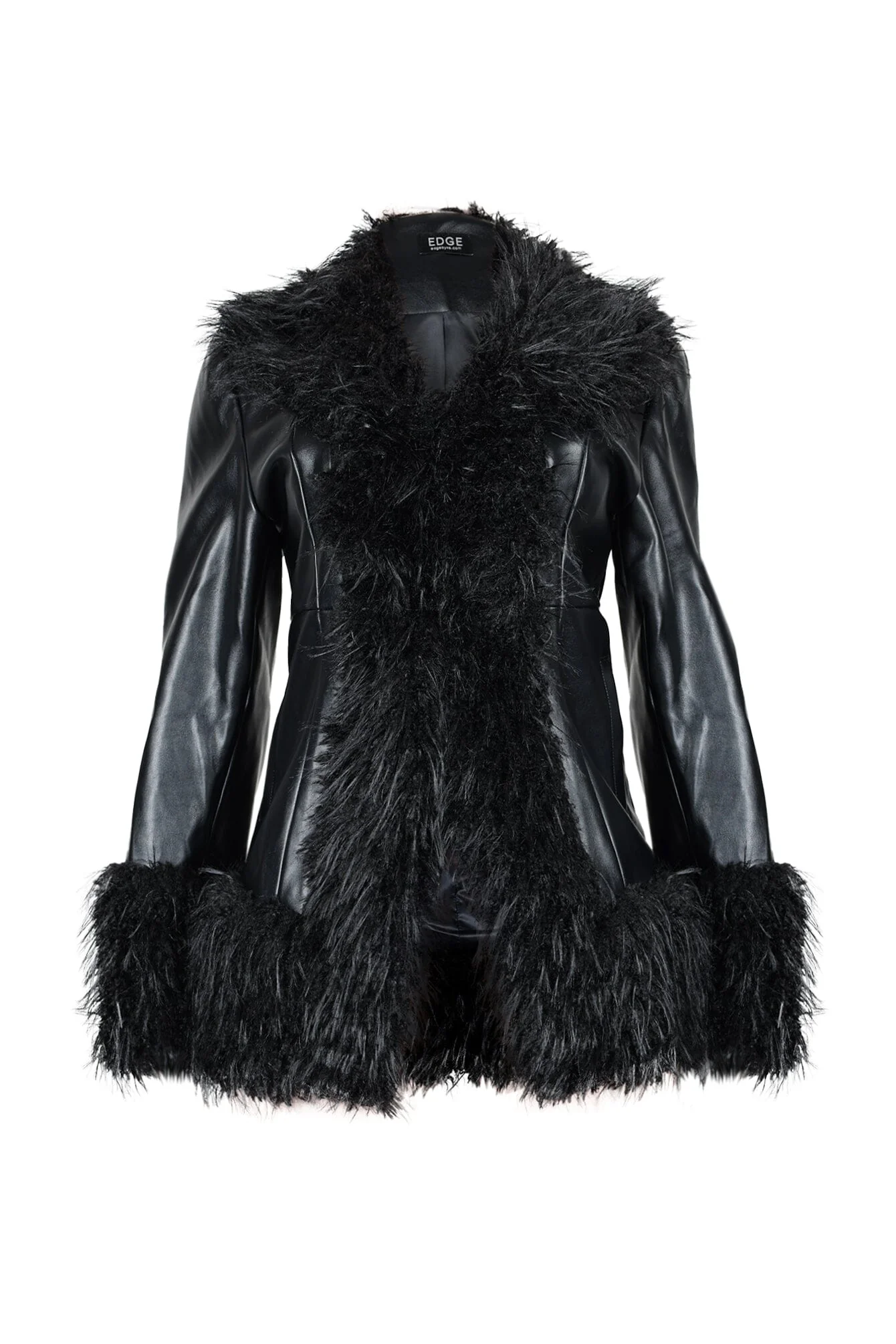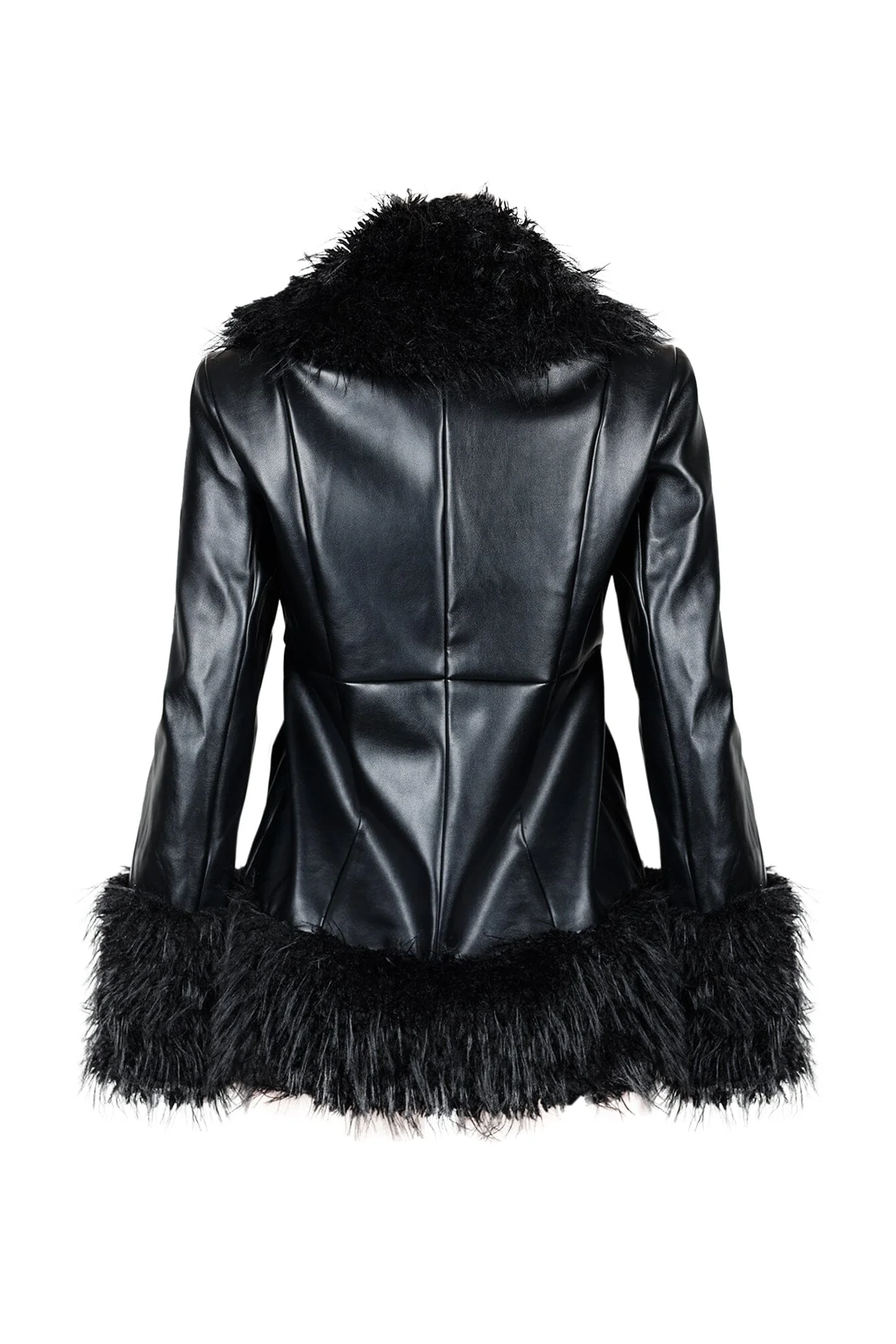 PU long sleeve jacket featuring fur trim details