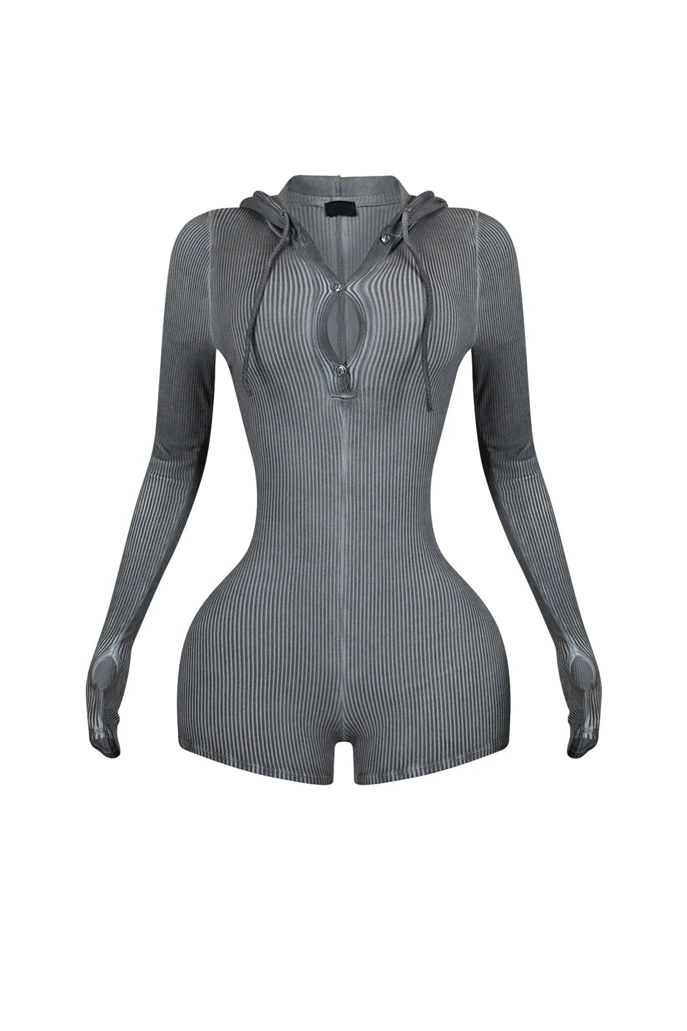 Meg Mineral Washed Hoodie Thumbhole Romper