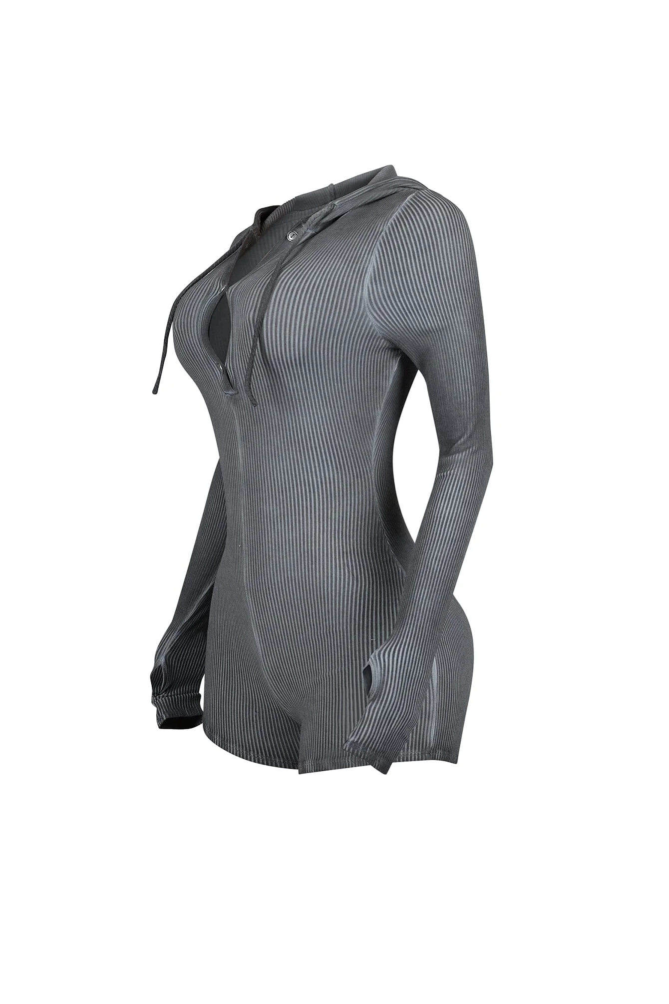 Mineral washed hoodie romper featuring a casual and stylish fit