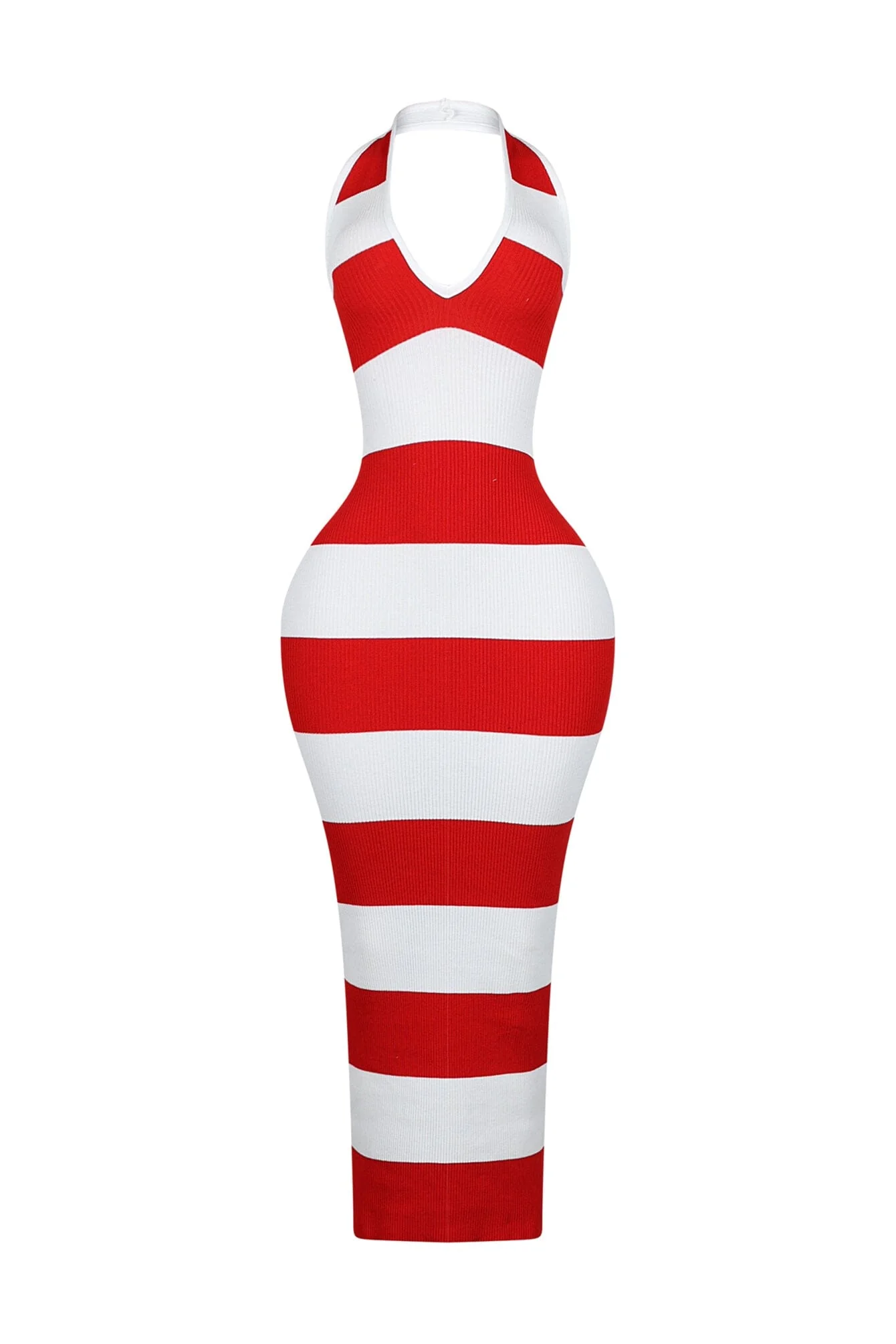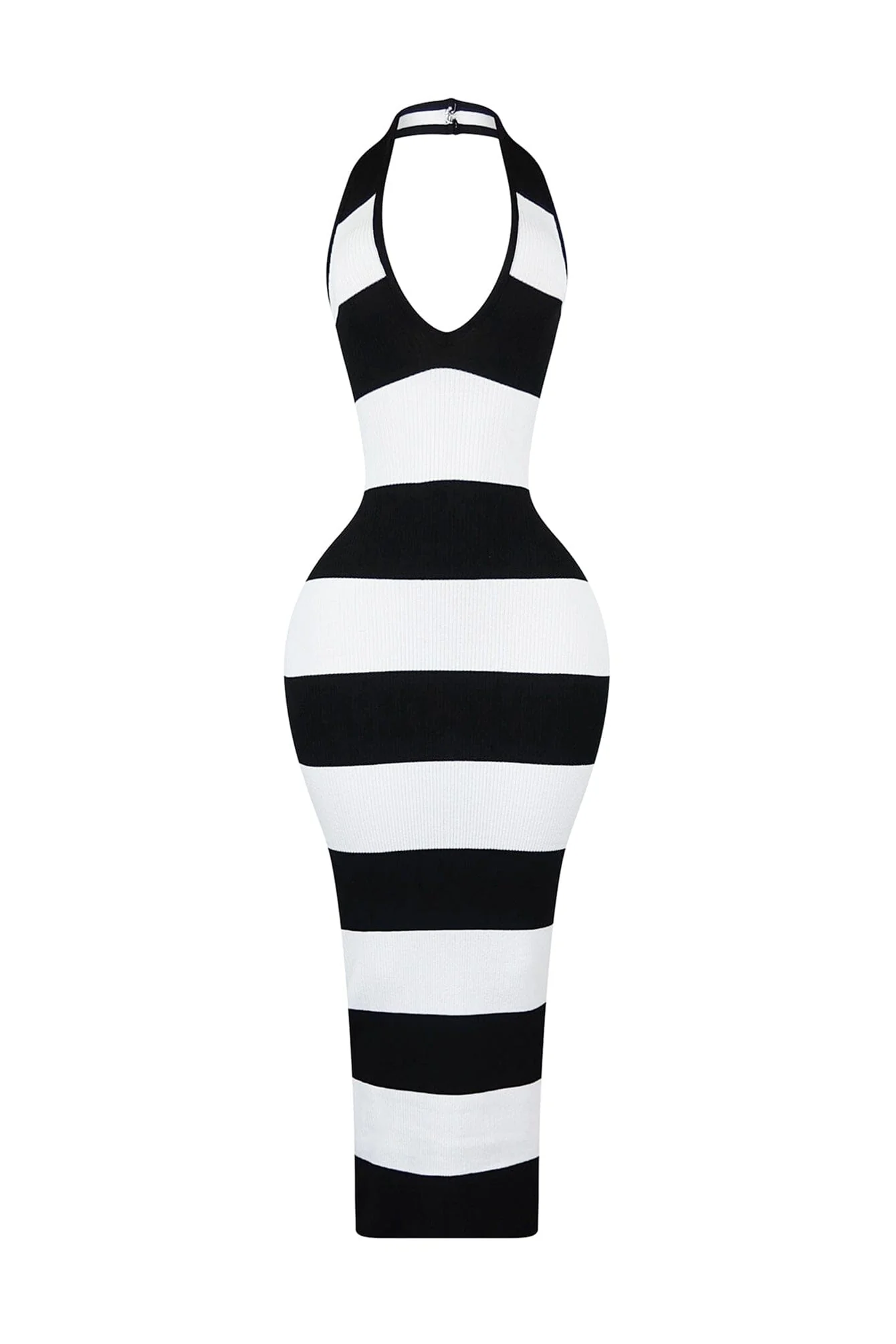 Sleeveless V-neck maxi dress featuring color block design and back lace up detail