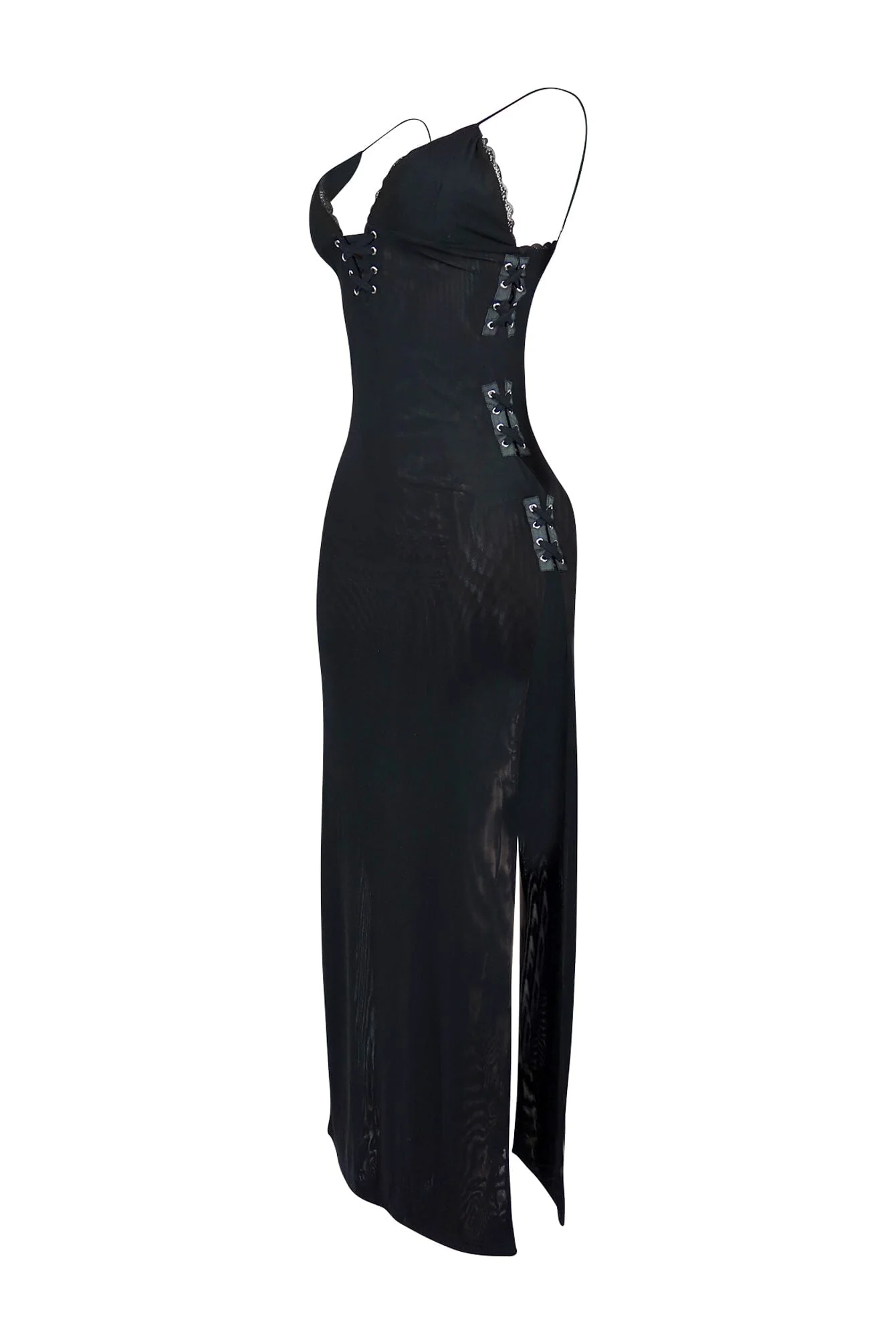Oprah Lace Trim Mesh Maxi Dress