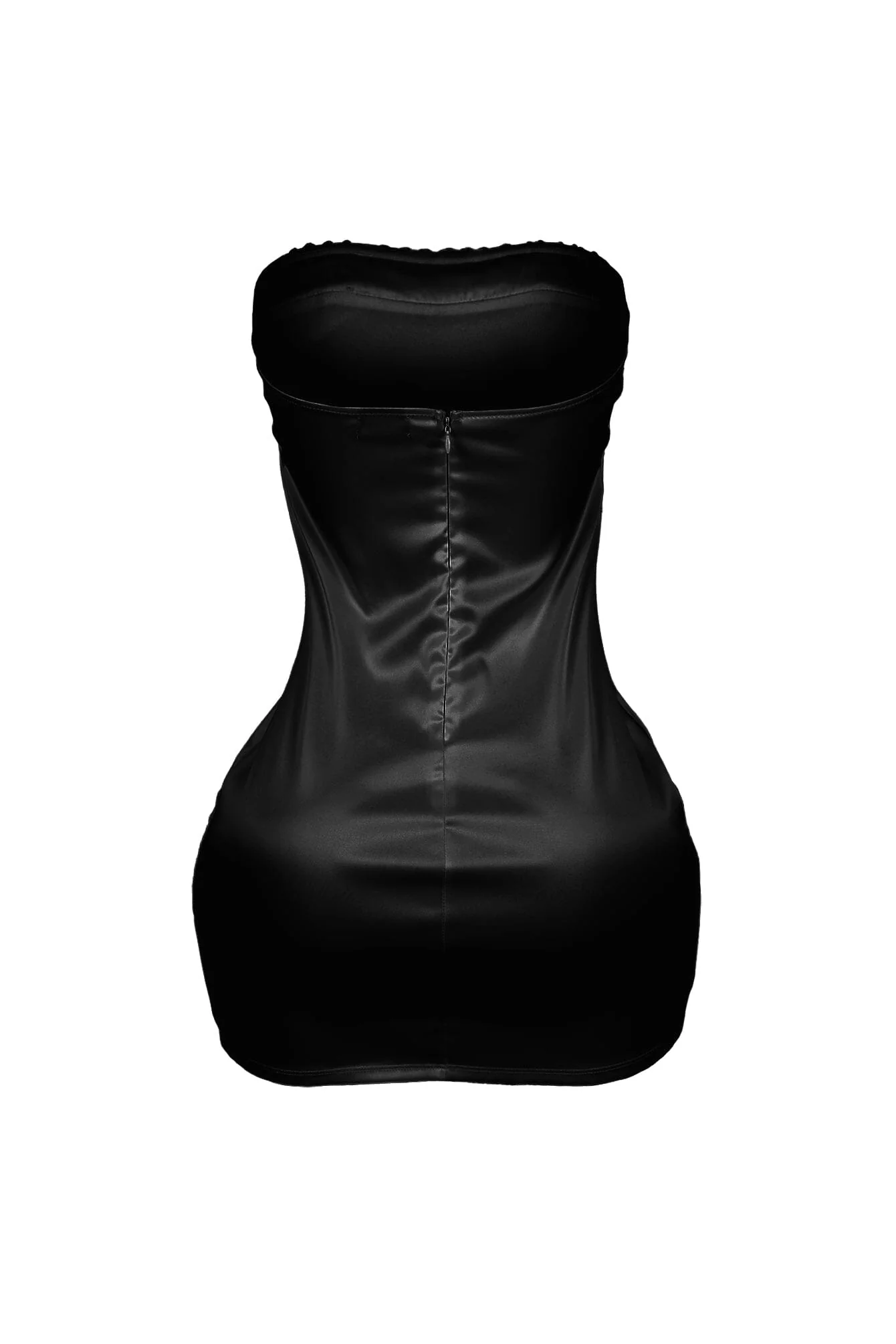 Satin tube mini dress featuring a bustier design with ribbon lace trim