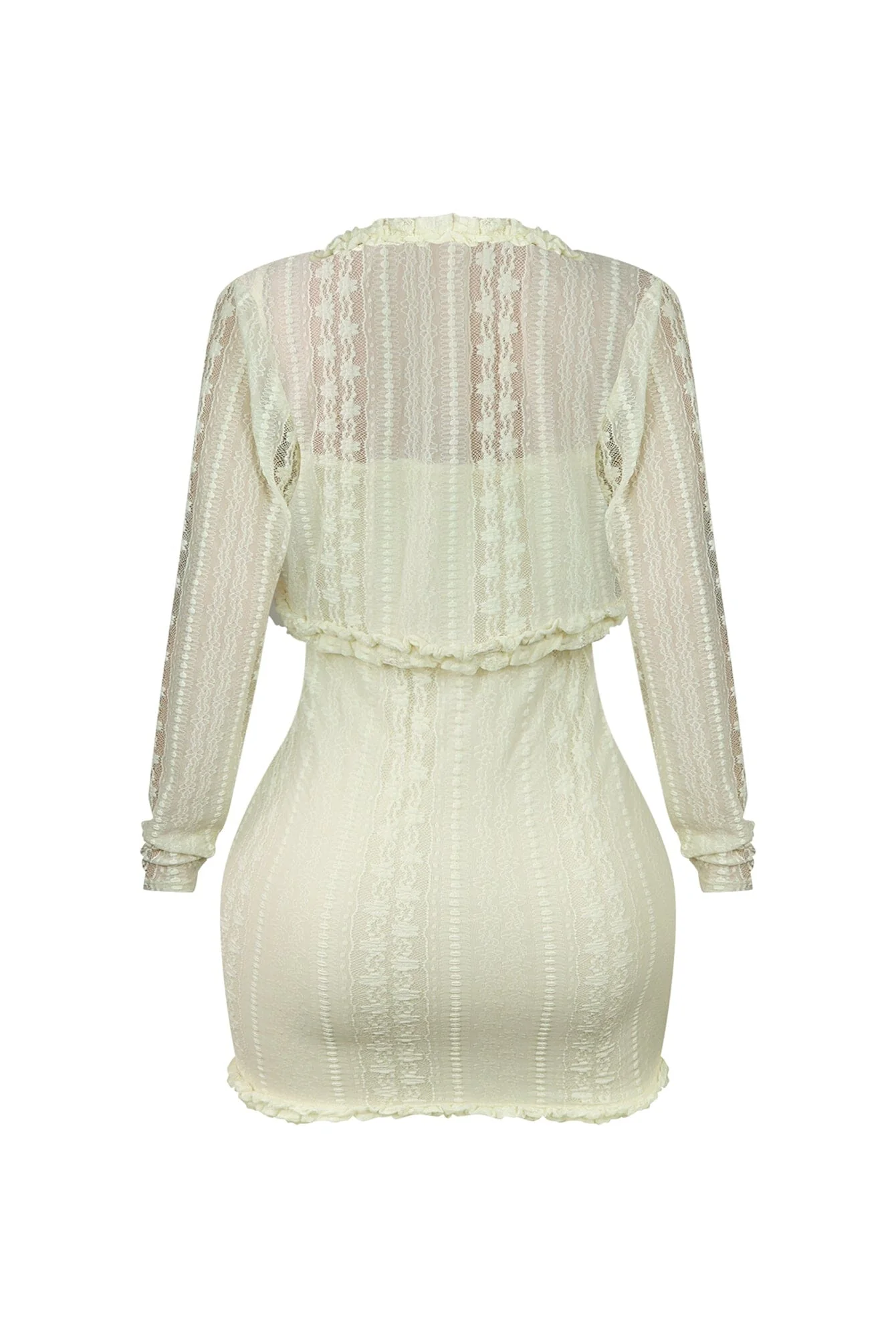 Tank adjustable mini dress featuring lace mesh fabric with full lining under