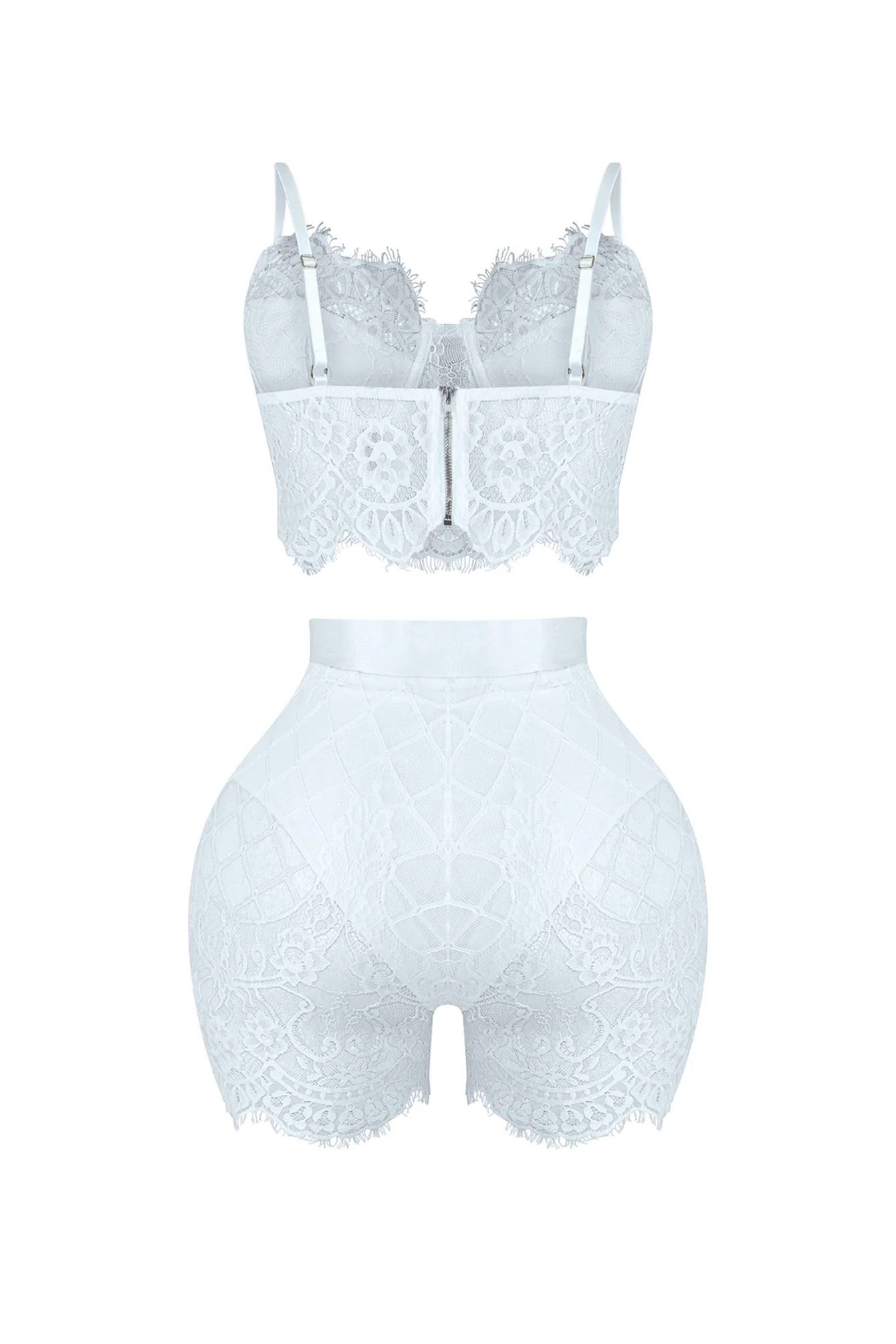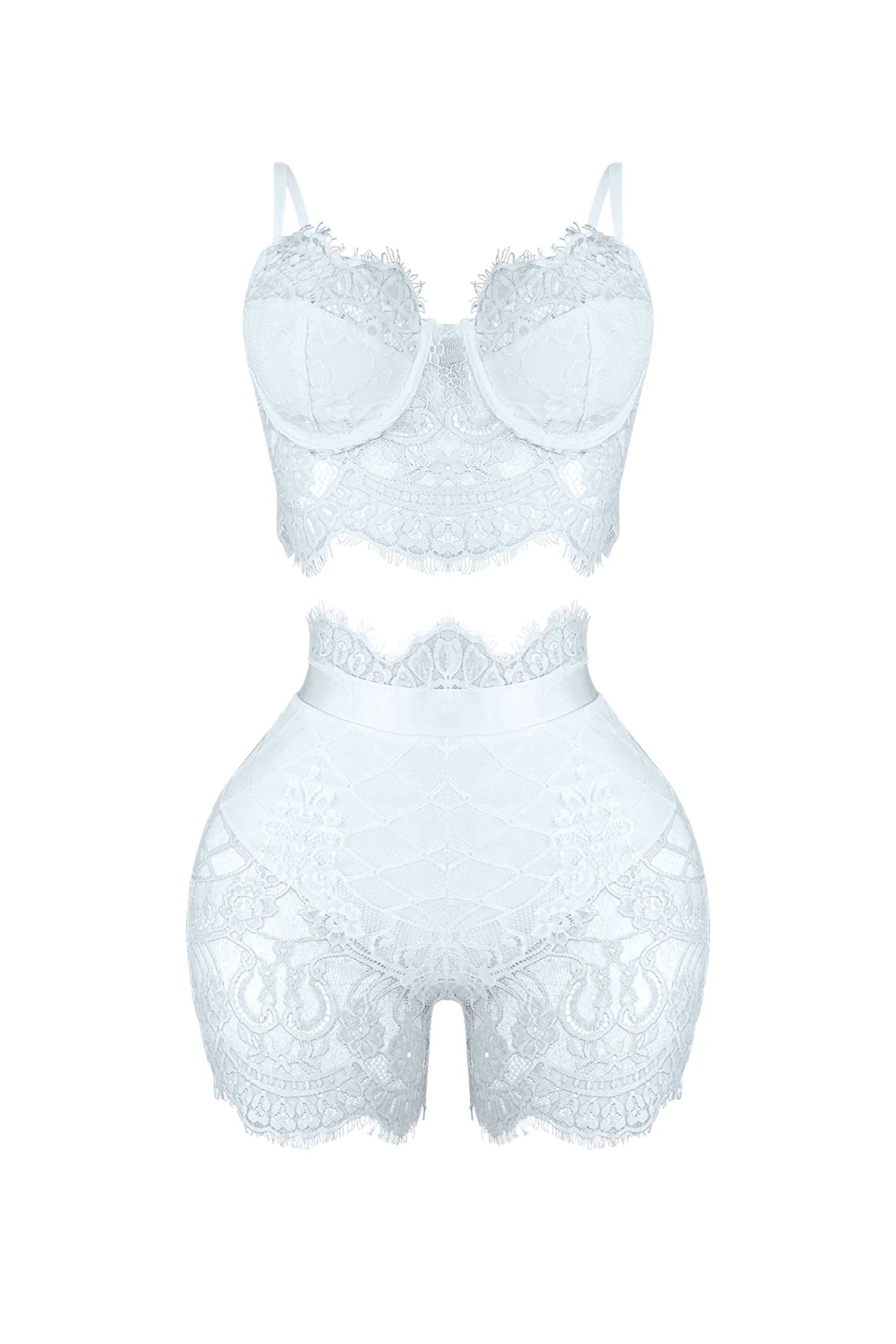 Lace bustier top featuring wired cups with lining and adjustable straps