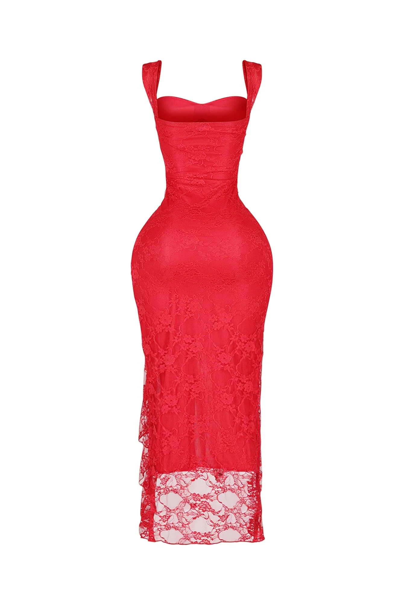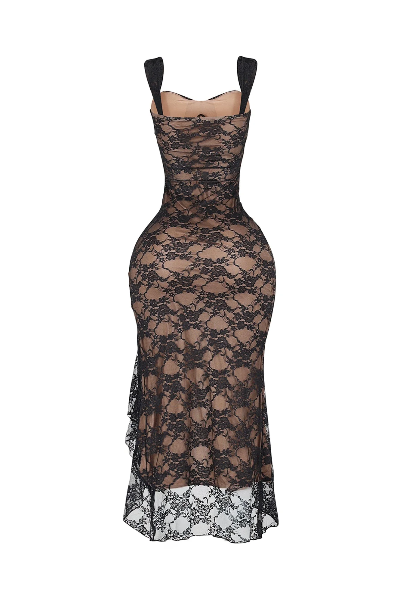 Lace tank long dress featuring asymmetrical hemline and padded bra