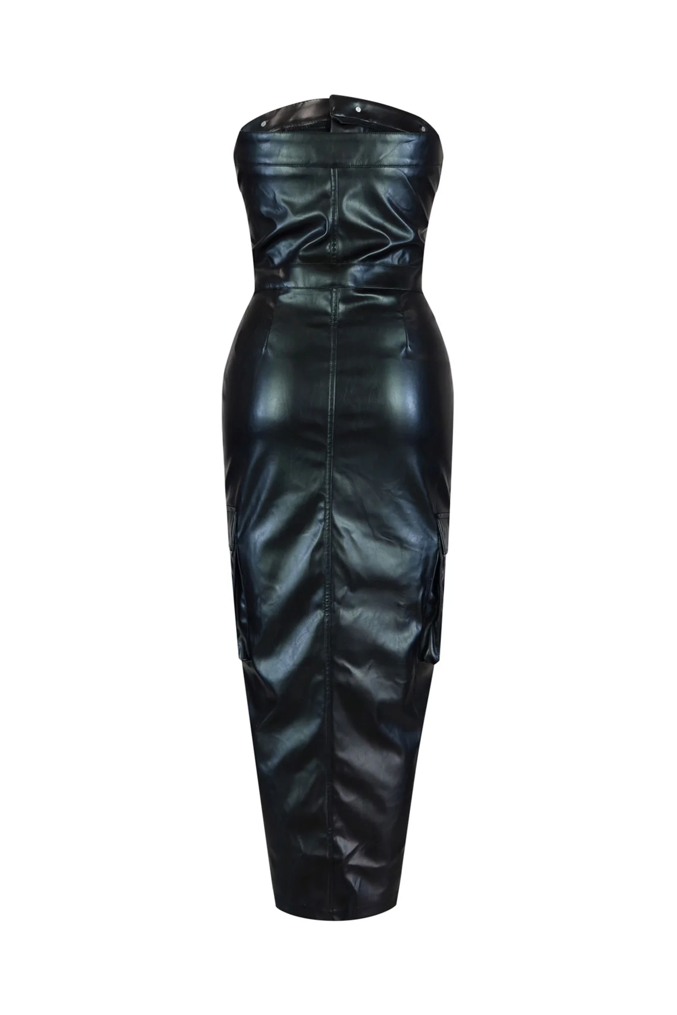 Faux leather tube midi dress featuring pocket details