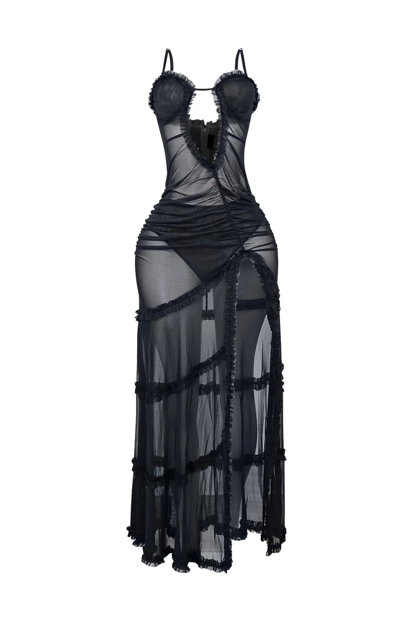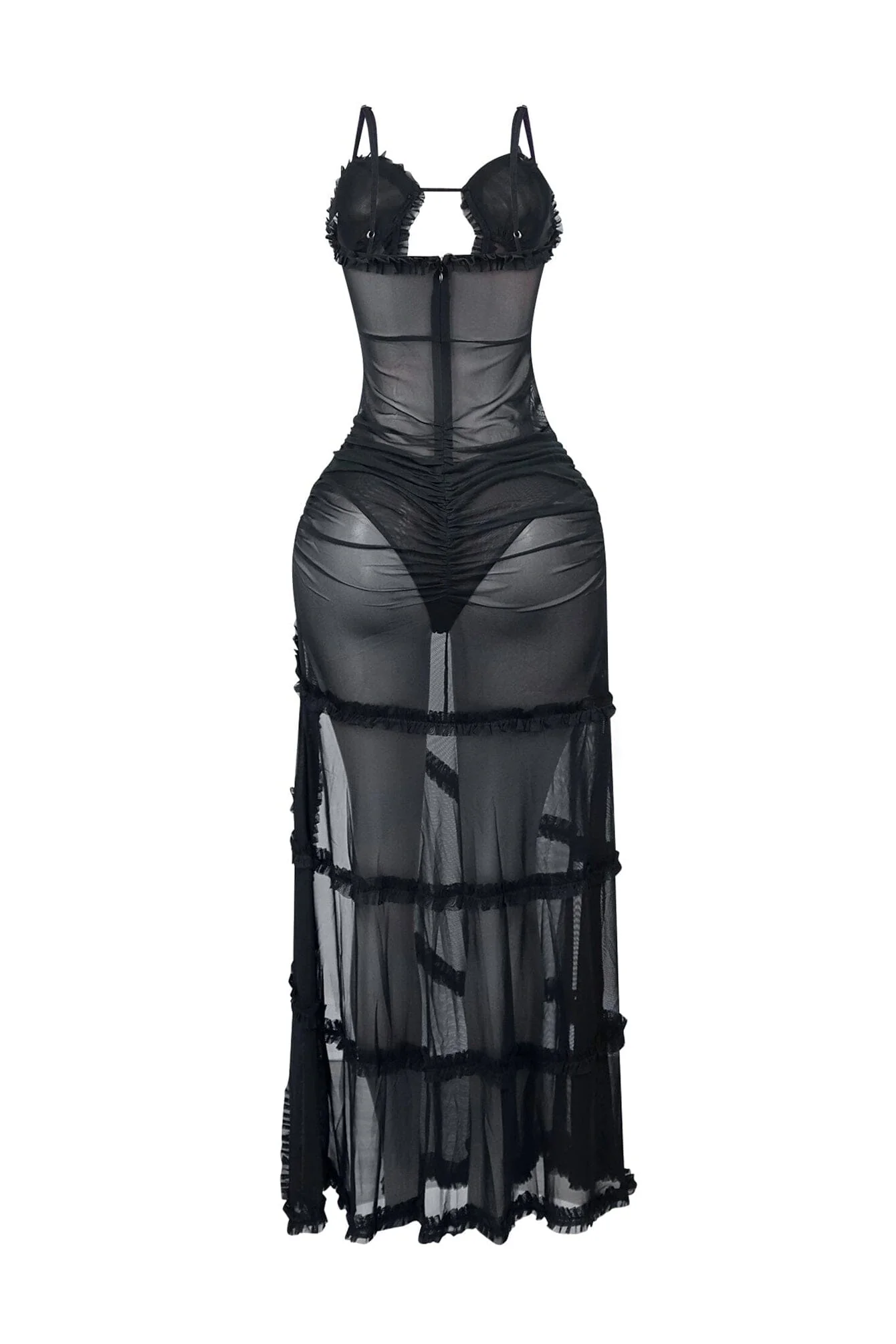 Wila Mesh Ruffled Maxi Dress With Panty Lining