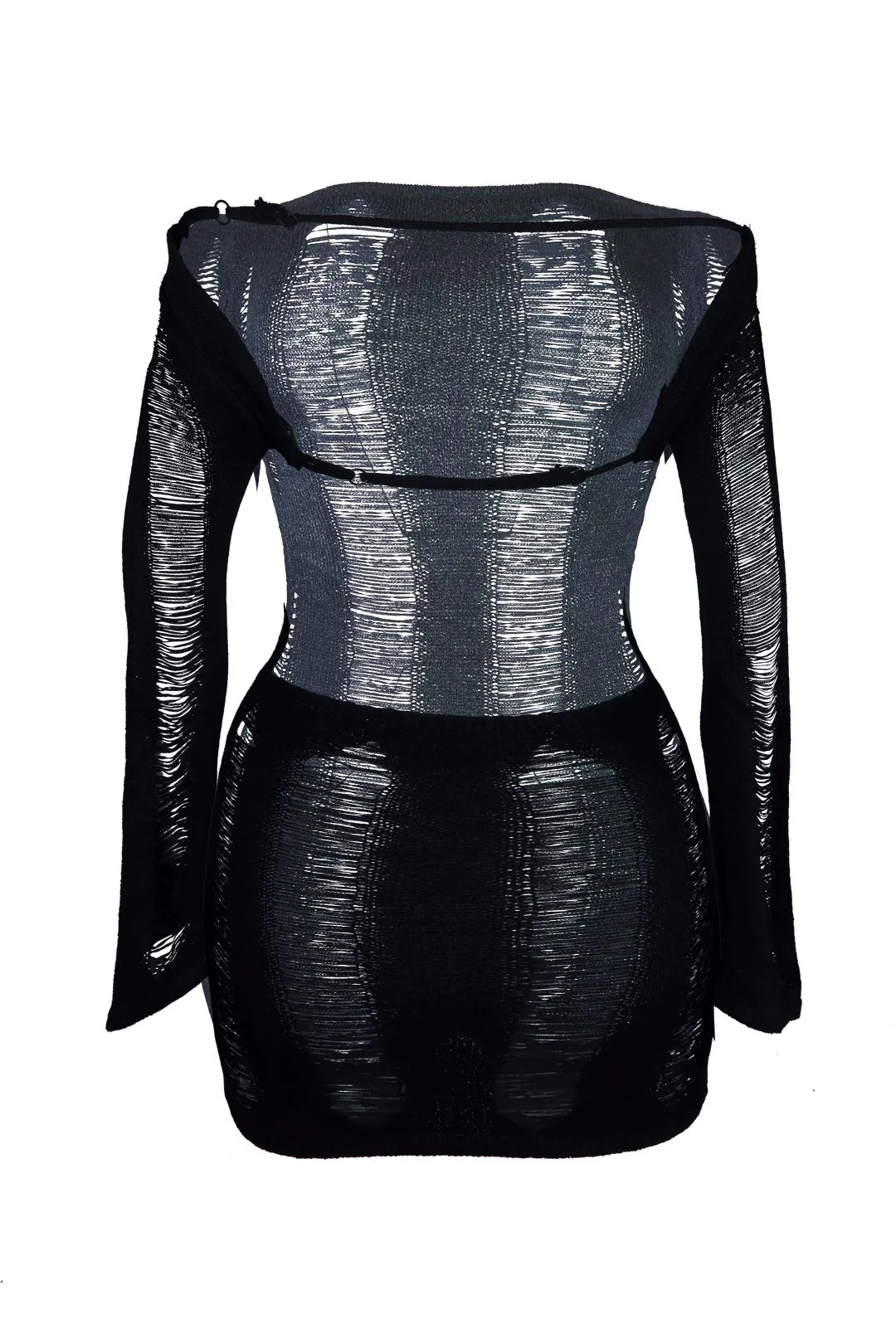 Open back cutout mini dress featuring off shoulder long sleeve detail
